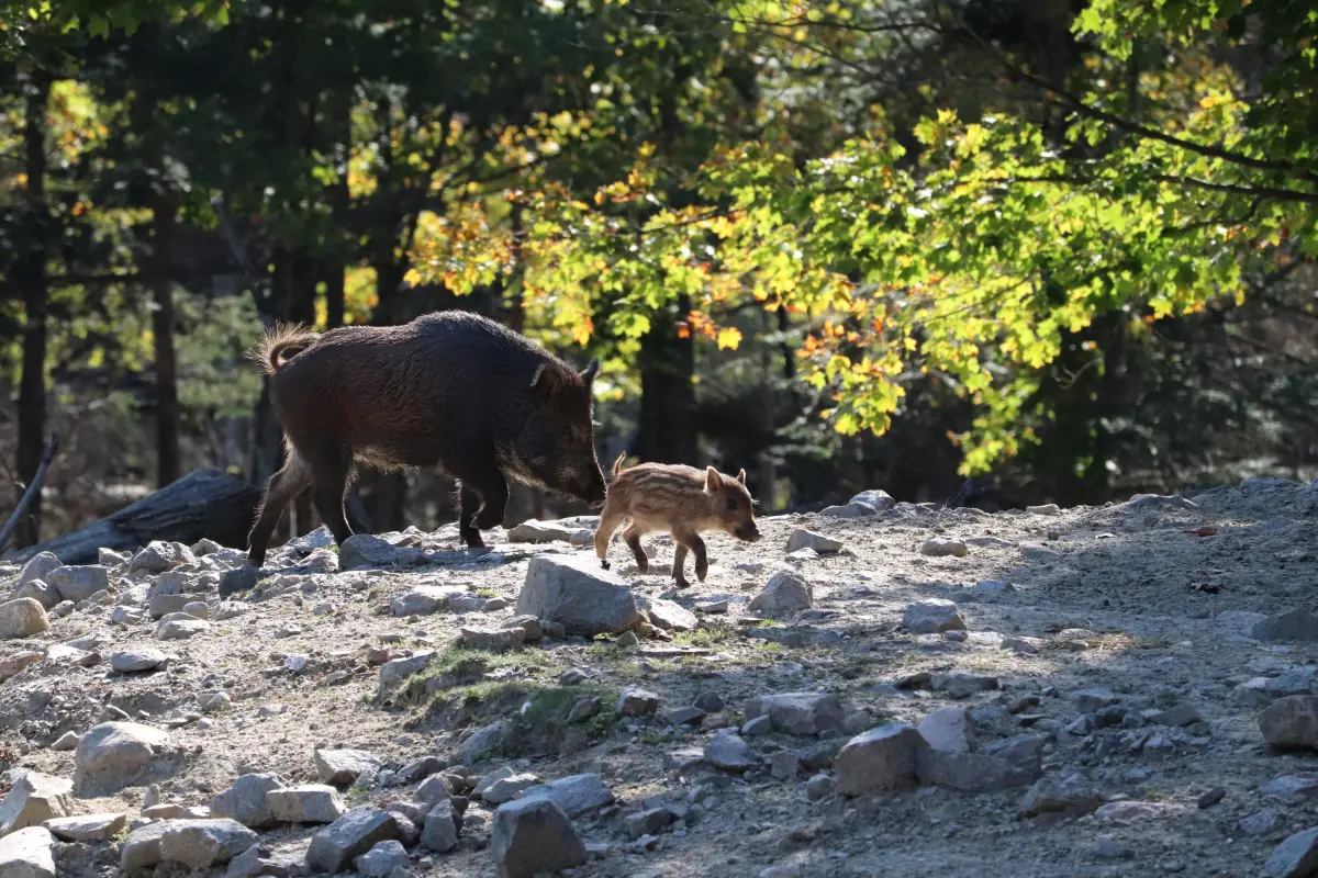 Famille de sanglier dans le Parc Oméga, Québec, Canada